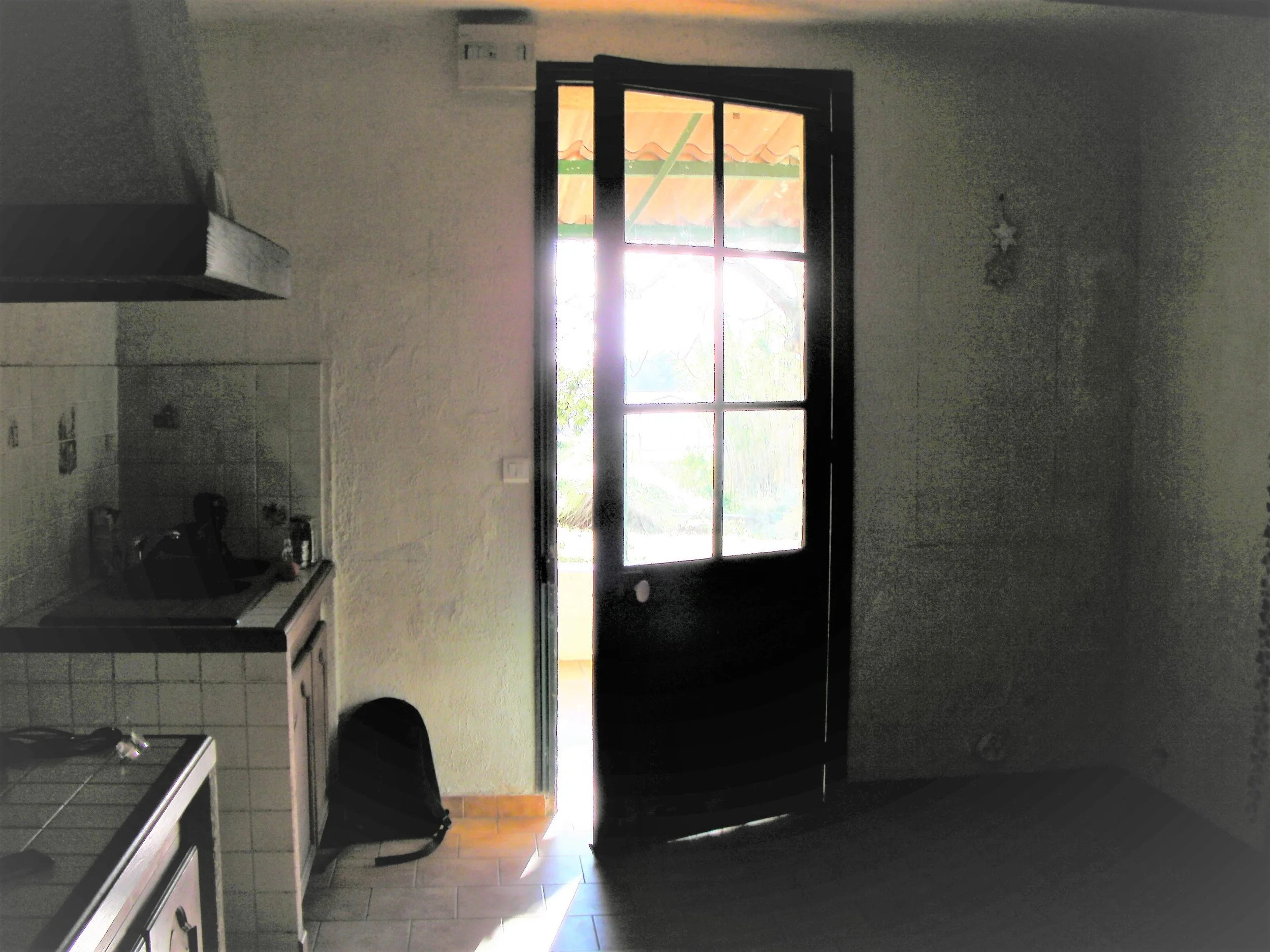 Fenêtre devenue porte-fenêtre et donnant sur toit terrasse de la nouvelle véranda